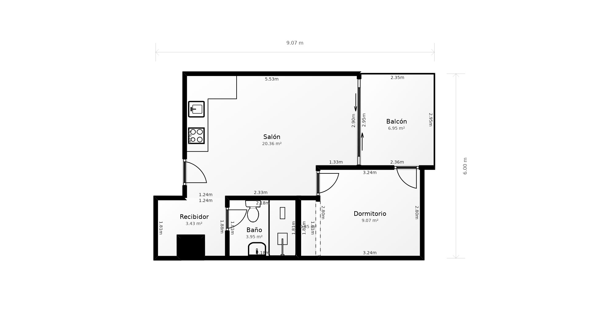 60 m² construidos, 35 m² útiles