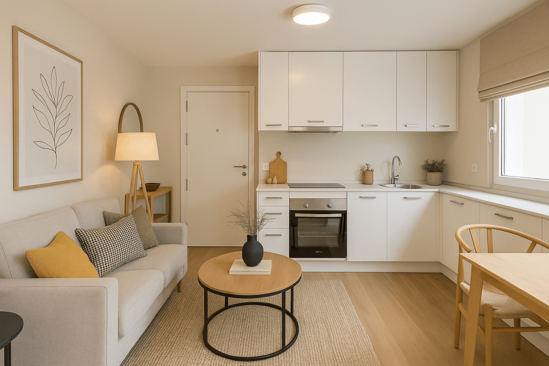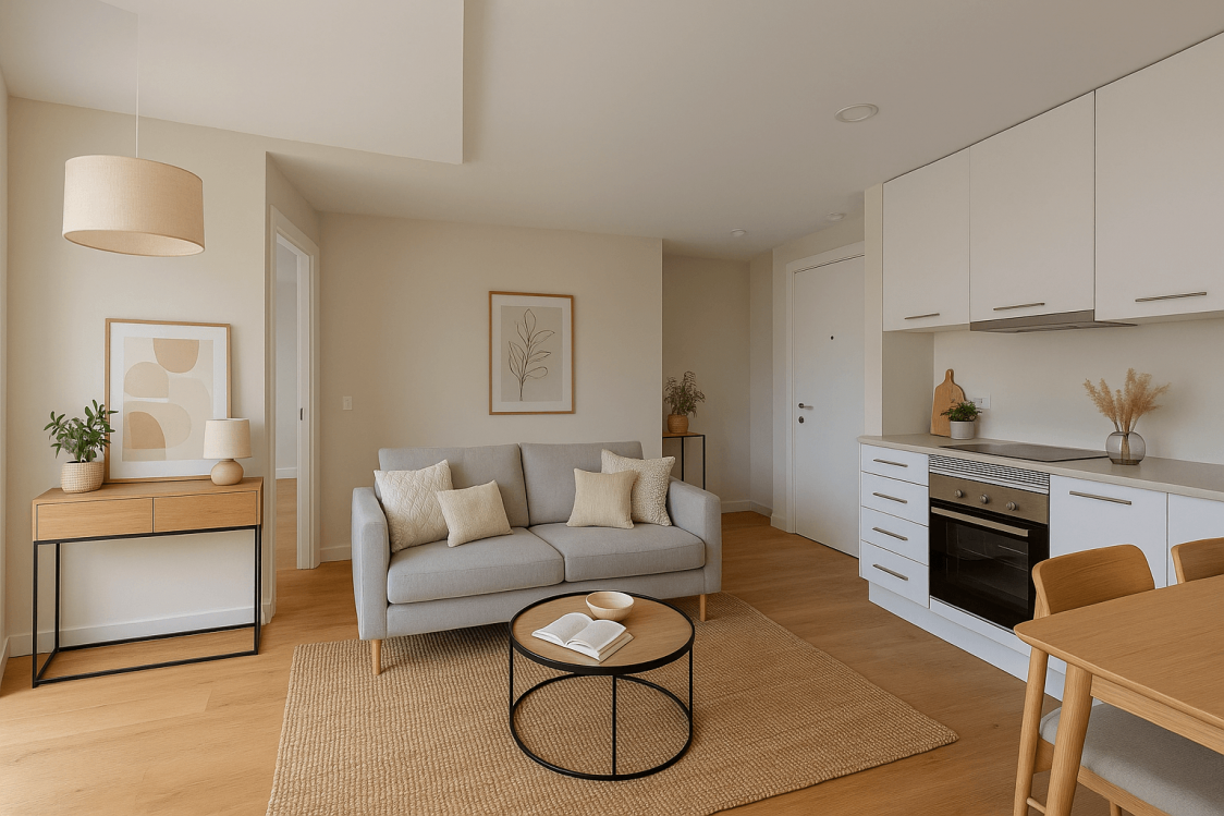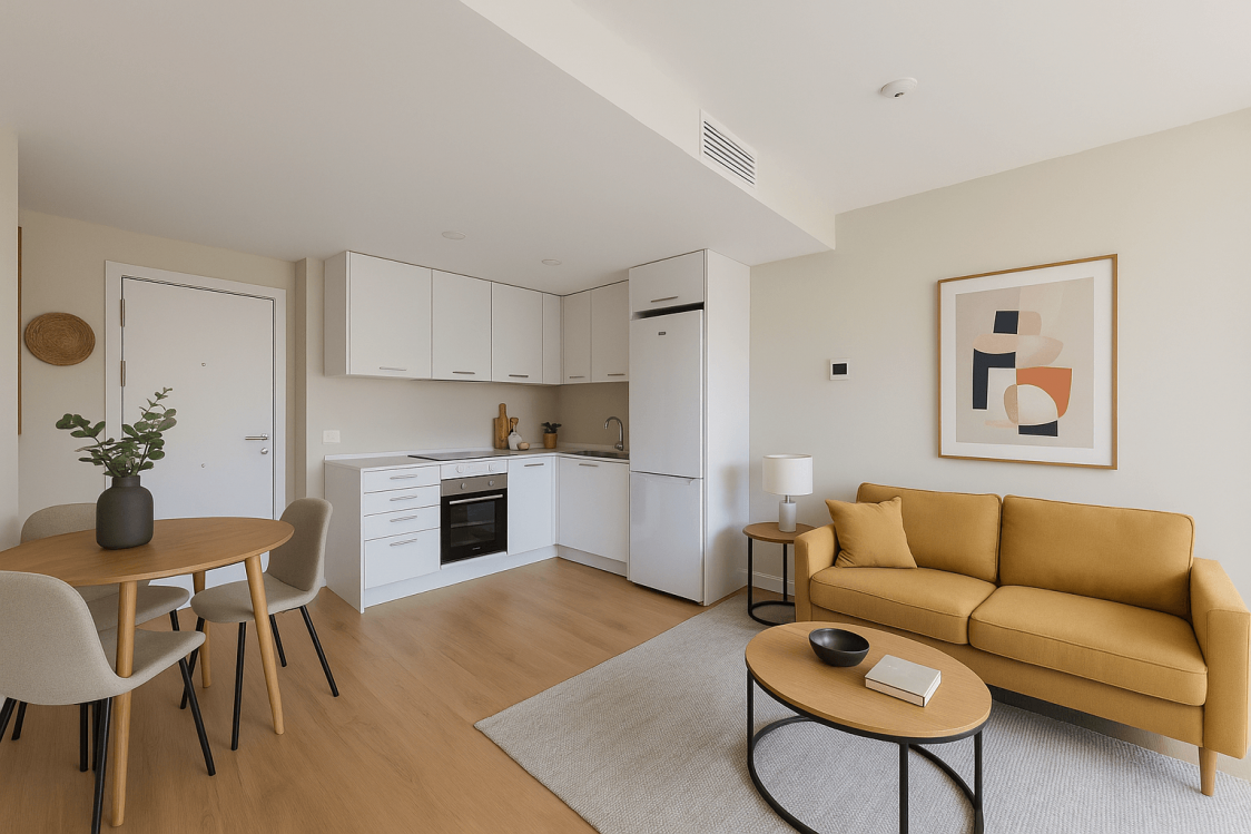 Cocina equipada y casa sin amueblar