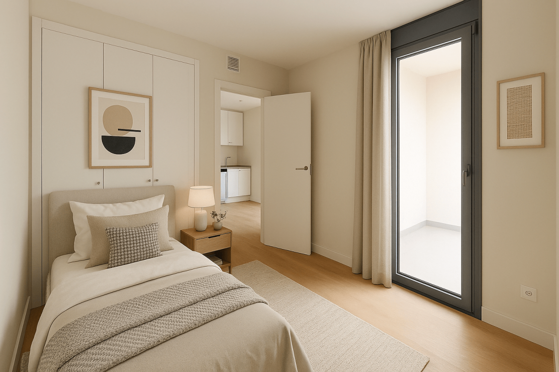 Loft a estrenar de 1 dormitorio de 60 m2, con amplia terraza en urbanización con piscina, pádel, gimnasio y coworking. Sin amueblar. Plaza de Garaje incluida en el precio.